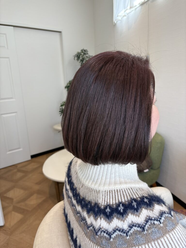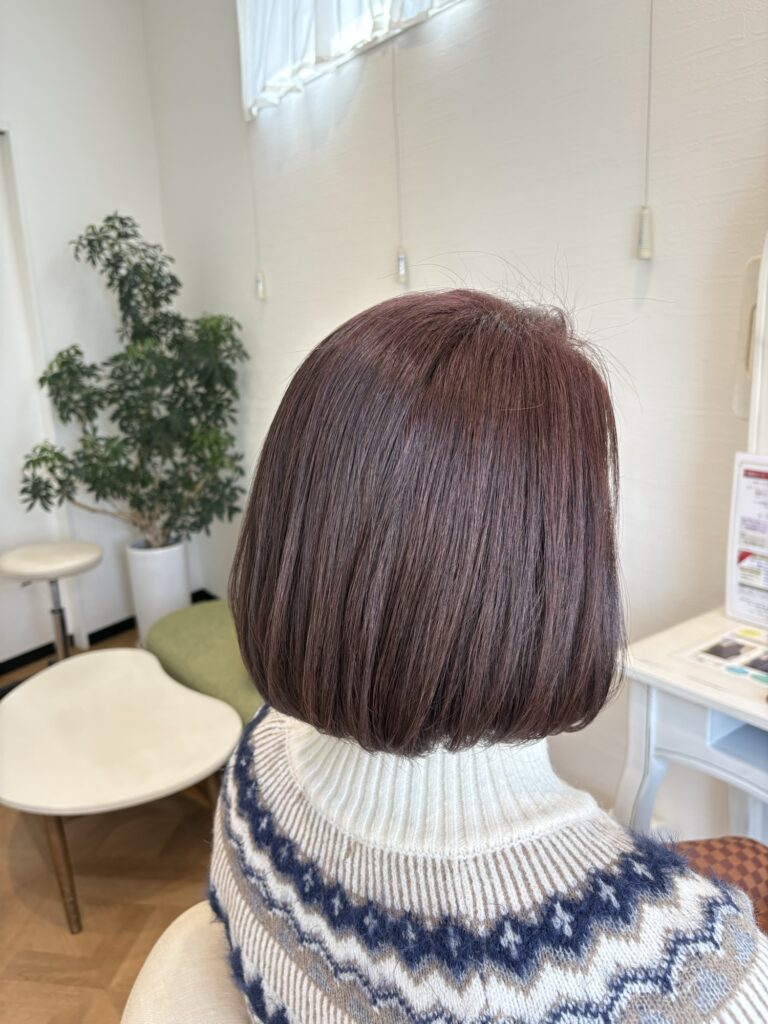 毎回AVEDAカラーをオプションでなさってる方で、今回は少しカラーチェンジして、赤味がほんのり効いたツヤ系パープルブラウンに🎵