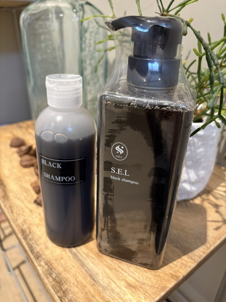「S.E.Lブラックシャンプー」の黒色のもととなっているのがヘマチンという成分が残留するアルカリ薬剤成分へと働きかけ除去してくれるので施術後の色落ちやダメージを軽減する事ができます😊