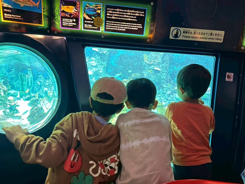 私も乗ってみたかった潜水艦のアトラクションはなんとか乗ってくれたので、良かったです😭✨