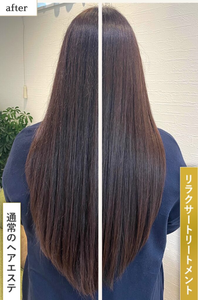 カラーエステコース、パーマエステコース、ヘアエステコース、ストレートエステコースのエステコースに+αで追加するメニューのリラクサートリートメントは