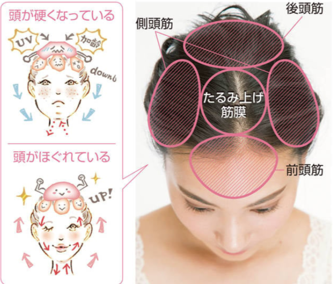 お顔のリフトアップ効果も期待できる「頭皮マッサージ」もおすすめですよ。 シャンプーの時に指の腹でくるくるとマッサージしてみましょう。