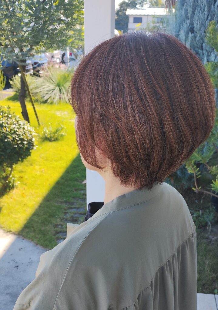 首まわりがすっきりするショートは、季節のファッションとも相性抜群ですよ✨