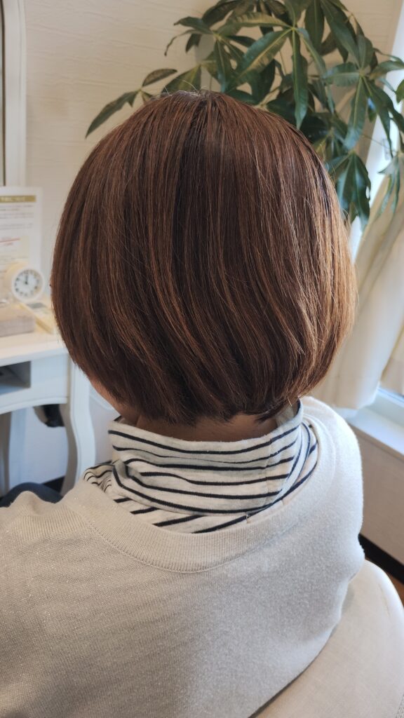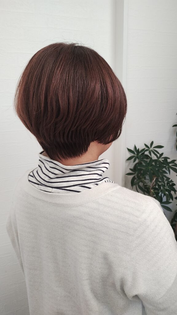 後頭部はふんわり丸みを残すことで、横顔のバランスもきれいに見えます。
