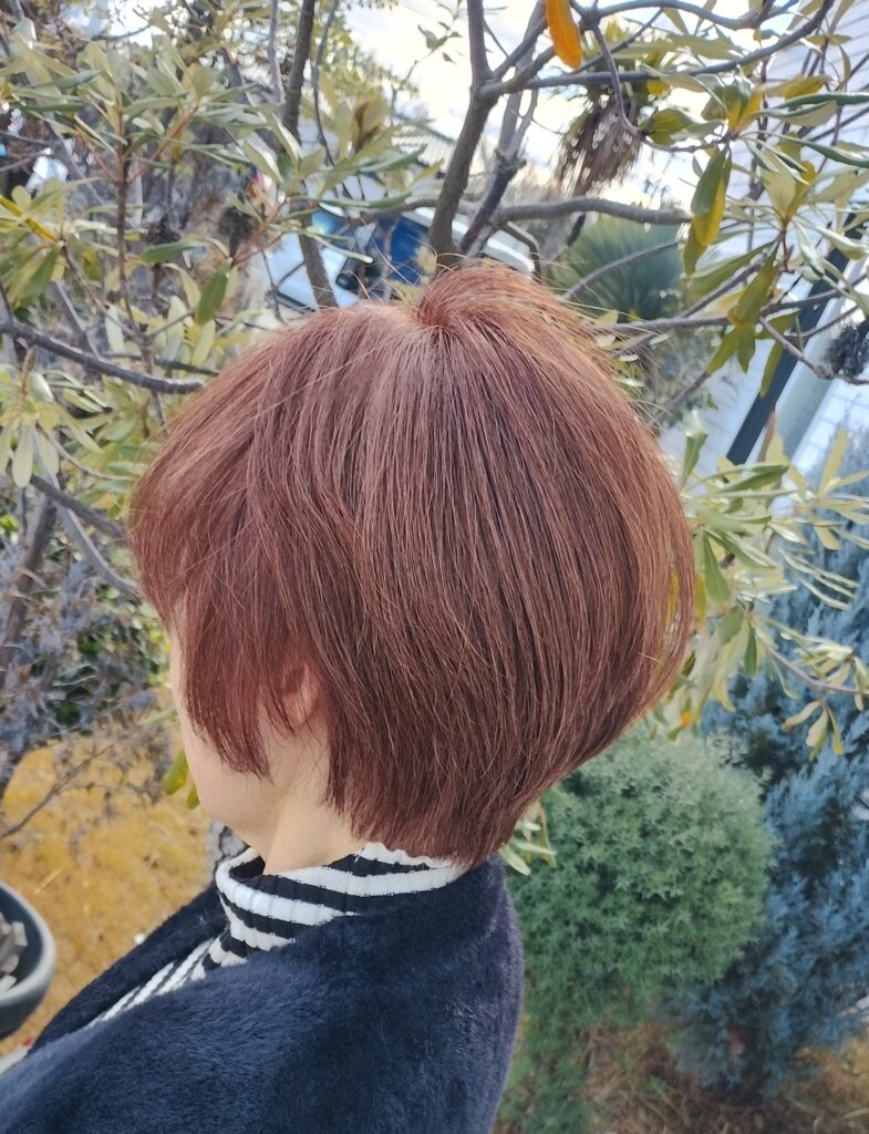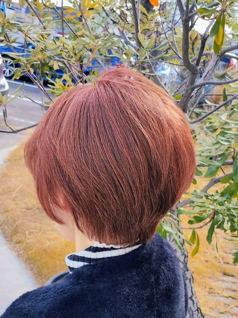 明るめ白髪染めで気分一新✨ N.カラー「スカーレット」とショートボブで軽やかに💛